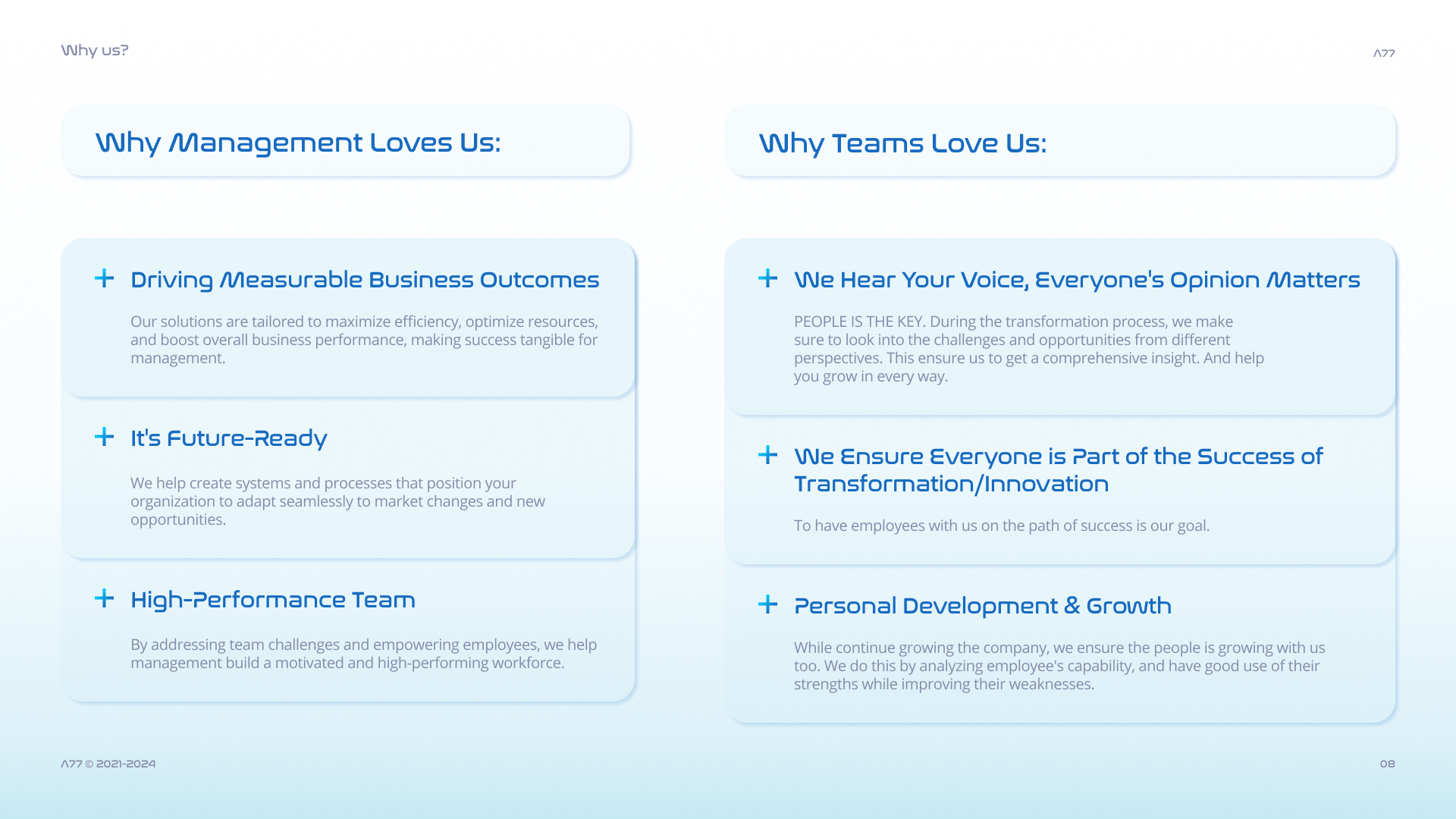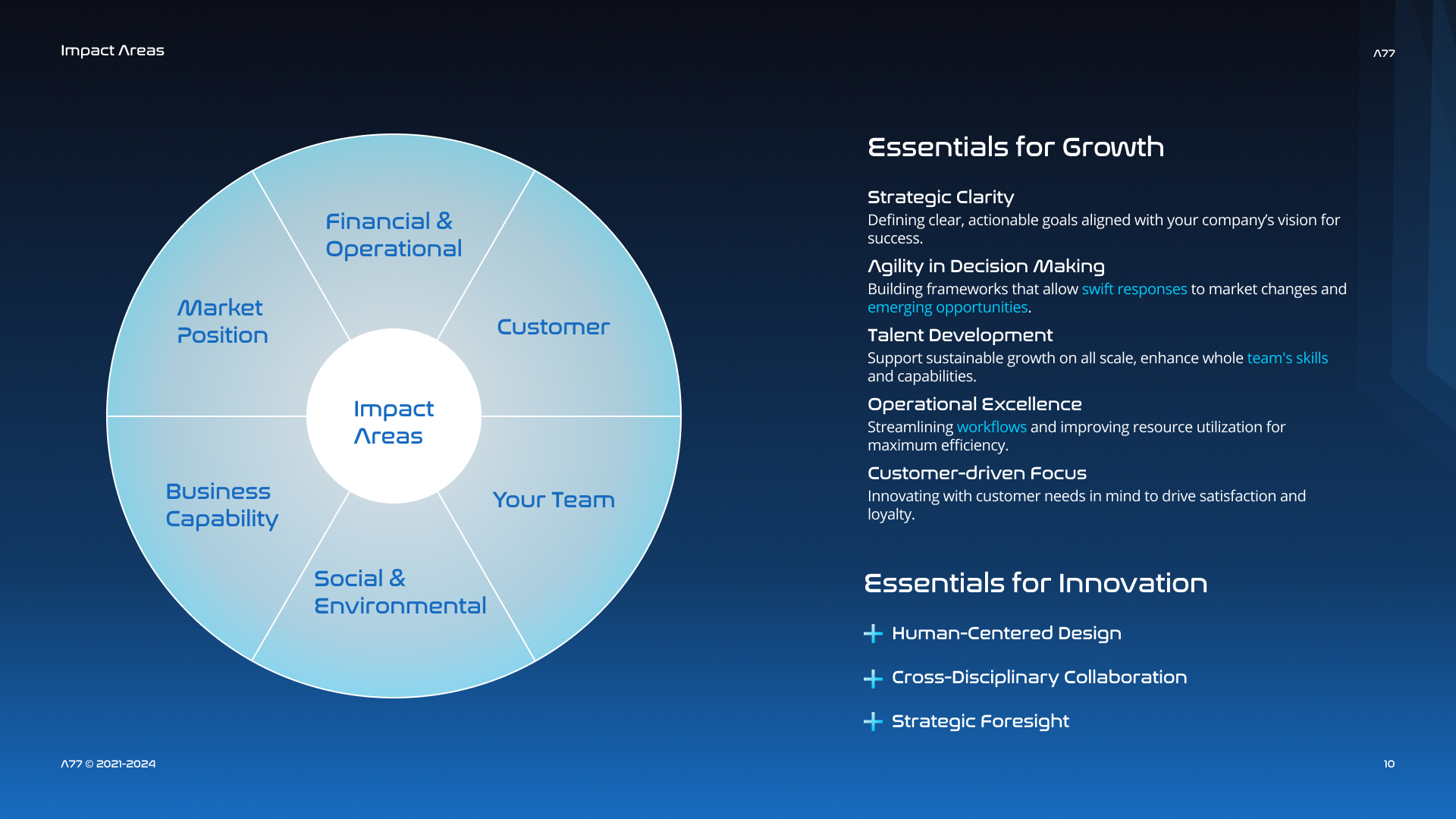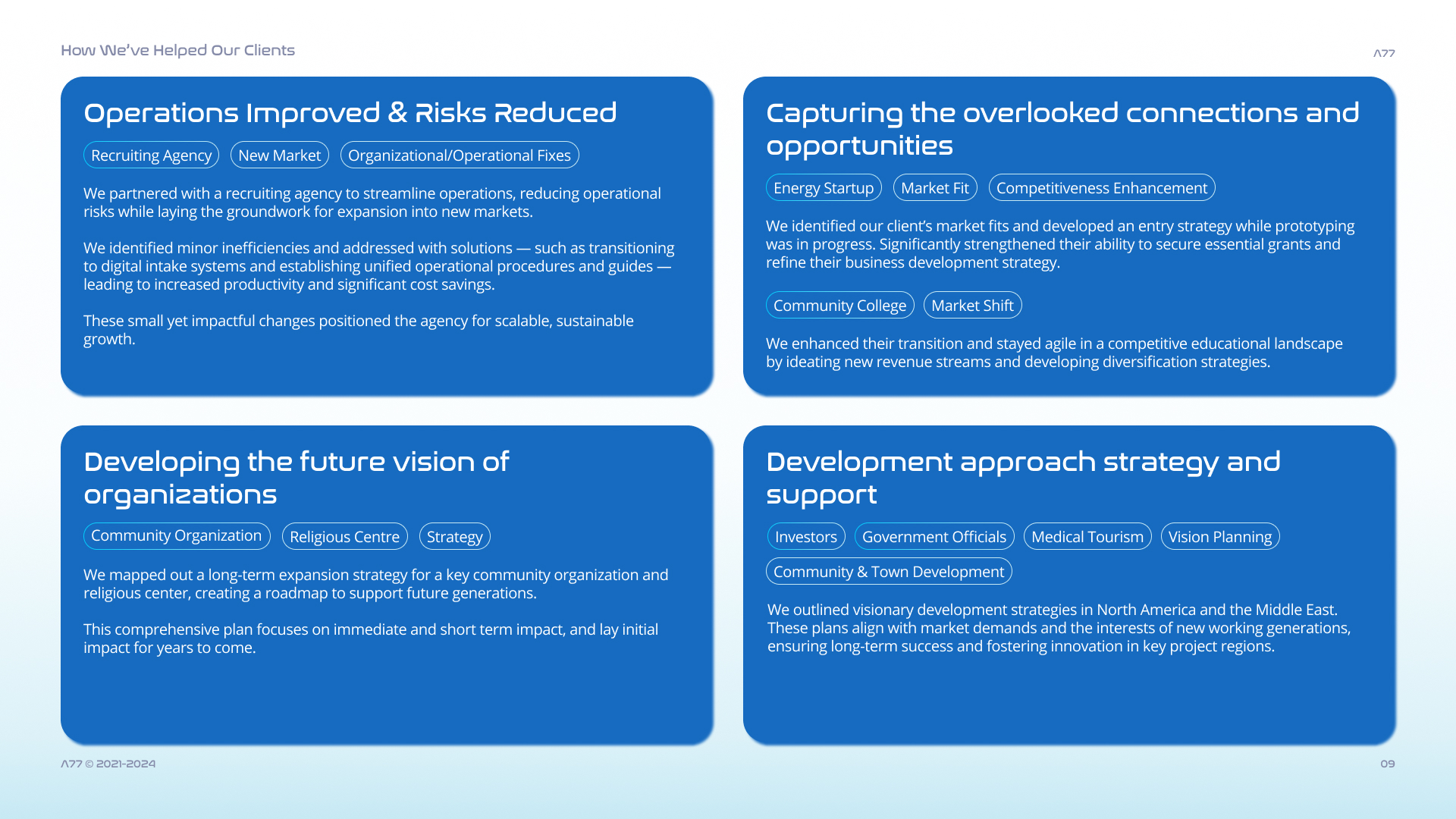 During this internship at A77 Inc., I contributed to the redesign of the firm’s innovation consulting service by restructuring its delivery model, developing operational strategies, and formalizing frameworks.